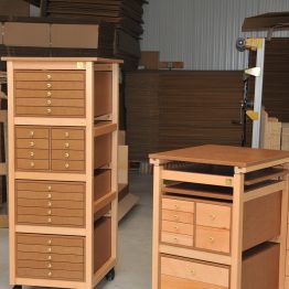 En Auboi creamos muebles para artes gráficas y textiles, manualidades y coleccionismo. Nuestra ebanistería es fruto del encuentro entre la pasión por la madera y por las artes.