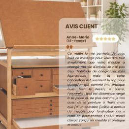 Más allá de trabajar la madera, lo que me fascina de este oficio es poder cumplir los deseos de nuestros clientes, ¡cuánto más insólitos, mejor! La reflexión previa a la concepción del mueble atelier artístico fue realmente estimulante. Poder combinar el maravilloso oficio de ebanista con el de diseñador de nuevos conceptos me llena de satisfacción.