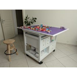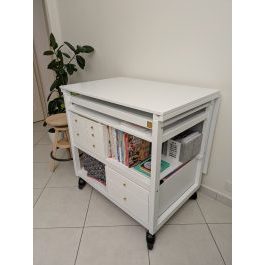 En costura, resulta muy útil disponer de grandes superficies de trabajo para crear patrones o cortar tejidos, pero no es fácil encontrar espacio para una gran mesa de corte. Gracias a todos sus cajones, tendrá todo lo que necesite siempre a mano.